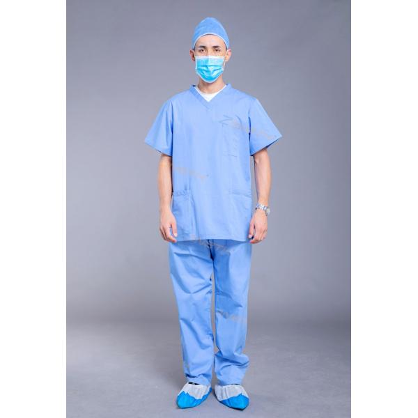 Reusable Unisex V Neck 3 Pockets Medical Scrub Suit Images |